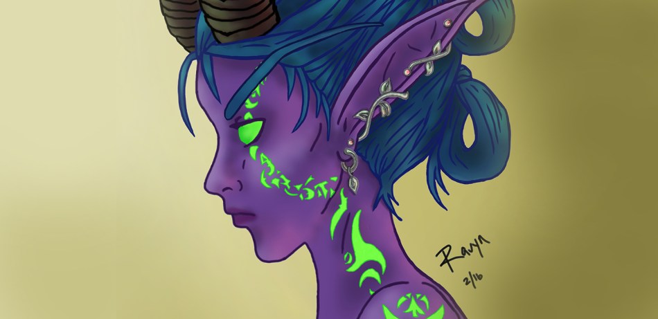 I’m going to start by showing one of the the first WoW fan arts I ever really did. This is from last Summer. I liked the armor on her hands but her face is pretty expressionless. I’m still working on that. Translating how I draw into digital is a big step for me.